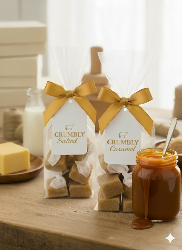 Crumbly fudge is a celebration of tradition, texture and taste. Crafted by hand in small batches, each piece is slow-cooked using only four natural ingredients: cream, milk, butter and sugar. The result is a rich, golden fudge with a distinctive crumbly texture that gently melts on the tongue — never too soft, never too firm.